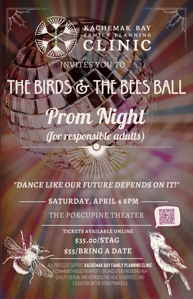 Get ready to relive the awkward glory—minus the curfew—at The Birds & The Bees Adult Prom, a delightfully cheeky soirée benefitting Kachemak Bay Family Planning Clinic.